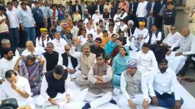 राजस्थान विधानसभा के बाहर सभी विधायक धरने पर बैठे