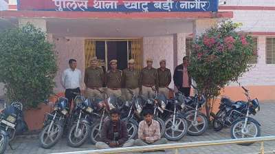 नागौर पुलिस ने वाहन चोरी के खिलाफ एक बड़ी कार्यवाही को अंजाम दिया है। पुलिस ने दो आरोपियों, दिनेश और सहदेव को गिरफ्तार कर चोरी की कुल 9 मोटरसाइकिलें बरामद...