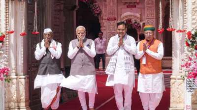 प्रधानमंत्री ने देशनोक में करणी माता मन्दिर में किए दर्शन, देश की खुशहाली एवं सुख-समृद्धि की कामना की; राज्यपाल एवं मुख्यमंत्री भी रहे उपस्थित