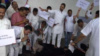 म.प्र. मानसून सत्र में कांग्रेस ने भैंस के सामने बीन बजाकर राजनीतिक प्रदर्शन किया