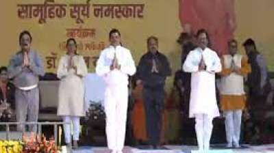 सामूहिक सूर्य नमस्कार के लिए मुख्यमंत्री डॉ. मोहन यादव भोपाल के शासकीय सुभाष विद्यालय पहुंचे