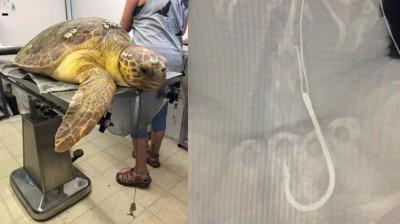 खाना समझ कछुए ने उठाई मुसीबत, फिश हुक में फंसने के बाद शुरू हुआ बचाव अभियान