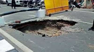 इंदौर: विजयनगर थाना क्षेत्र के स्कीम नंबर 54 में शुक्रवार को सड़क का एक बड़ा हिस्सा धंस गया था, जिससे वहां पर करीब 5 फीट का गहरा गड्ढा हो गया था....