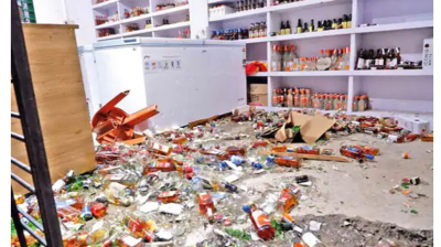 महिलाओं ने शराब दुकान में की तोड़फोड़। सालभर से हटाने की कर रहे थे मांग