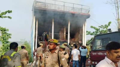 दो मंजिला मकान में आग का कहर, मां-बेटे की मौत; पति गंभीर घायल