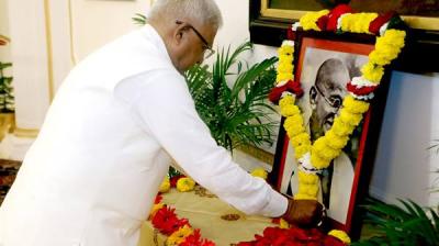 राज्यपाल पटेल ने राष्ट्रपिता महात्मा गांधी की पुण्यतिथि पर अर्पित की पुष्पांजलि