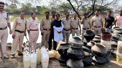 आबकारी विभाग ने अवैध शराब निर्माण के विरुद्ध की बड़ी कार्रवाई: 200 किलो महुआ लाहन और 120 लीटर अवैध कच्ची शराब जब्त