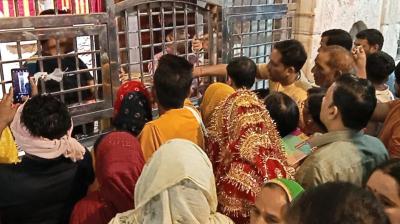 नवरात्रि के पहले दिन मंदिरों में रौनक, भीमेश्वरी देवी मंदिर में सुरक्षा कड़ी