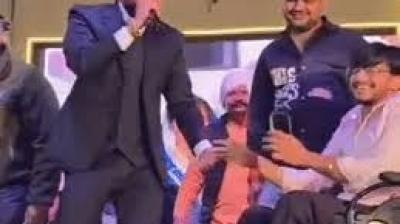 कार्यक्रम के दौरान मंच पर चढ़े पूर्व सरपंच को रोका