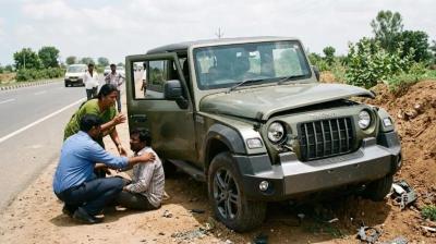 रफ्तार का कहर: Mahindra Thar ने पैदल चल रहे तीन लोगों को कुचला