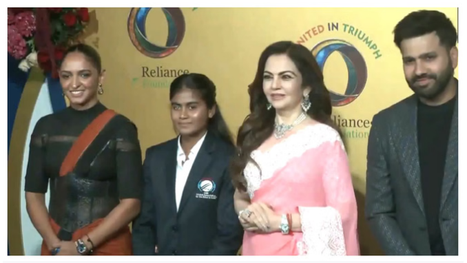 रिलायंस फाउंडेशन की संस्थापक और अध्यक्ष नीता अंबानी ने सोमवार को भारत के विश्व कप विजेताओं को सम्मानित किया। मुंबई में आयोजित इस भव्य समारोह में भारतीय महिला क्रिकेट टीम की कप्तान हरमनप्रीत कौर, भारतीय महिला दृष्टिबाधित क्रिकेट टीम की कप्तान दीपिका टीसी और पूर्व भारतीय पुरुष क्रिकेट टीम के कप्तान रोहित शर्मा सहित कई दिग्गज खिलाड़ी उपस्थित रहे। इस अवसर पर खिलाड़ियों की उपलब्धियों की सराहना की गई और उनके योगदान को देश के लिए गर्व का विषय बताया गया।