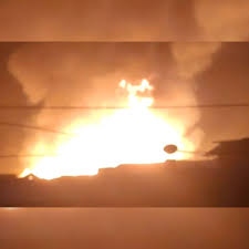 टक्कर के बाद ट्रक में लगी भीषण आग