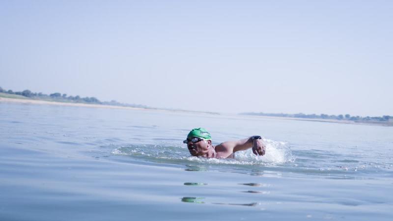 दर्द पर भारी पड़ा जज्बा: 63 की उम्र में नर्मदा में 25.65 किमी तैरकर बनाया नया रिकॉर्ड