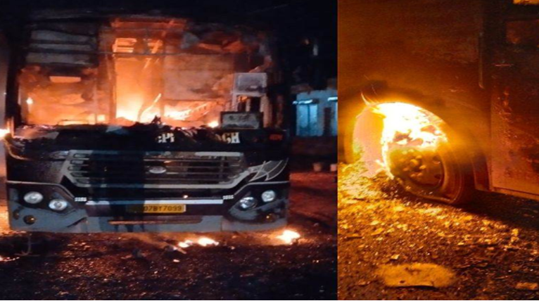 उत्तर प्रदेश के प्रयागराज से छत्तीसगढ़ से दुर्ग जा रही है यात्री बस सुबह-सुबह भीषण हादसे का शिकार हो गई , चलती यात्री बस में आग लग गई जिससे बस पूरी तरह जल कर खाक हो गई जबकि बस में सवार 80 से 90 यात्रियों को बस से जल्दी-जल्दी उतार कर सुरक्षित किया गया, आगके लगने का कारण अब तक पता नहीं चल सका है।