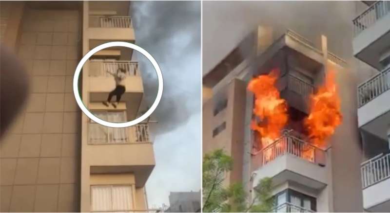 वीडियो में देखा जा सकता है कि आग लगने के बाद युवती ने इमारती की पांचवी मंजिल की बालकनी से नीचे की ओर चिल्लाते हुए कूद गई। हालांकि, नीचे खड़े लोगों ने युवती को सुरक्षित तरीके से पकड़ लिया।