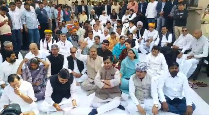 राजस्थान विधानसभा के बाहर सभी विधायक धरने पर बैठे