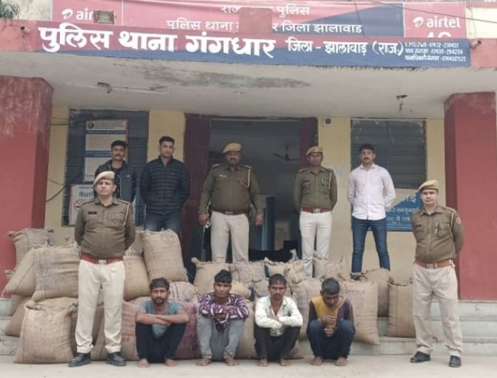 एसपी तोमर ने बताया कि फरियादी श्याम लाल राठौर ने 20 दिसम्बर को थाना गंगधार पर रिपोर्ट दी कि 18 व 20 दिसम्बर की रात मल्हारगंज स्थित उसके गोदाम से अज्ञात चोर सोयाबीन के कट्टे चोरी कर ले गए। रिपोर्ट पर मुकदमा दर्ज कर आरोपियों की गिरफ्तारी के लिए एएसपी चिरंजी लाल मीना व सीओ जय प्रकाश अटल के सुपरविजन एवं एसएचओ अमर नाथ जोगी के नेतृत्व में विशेष टीम गठित की गई।एसएचओ योगी व उनकी टीम द्वारा सघन अभियान चला आरोपियों की पहचान व मौजूदगी का गुप्त रूप से पता लगा गल्ला व्यापारी के गोदाम से सोयाबीन की फसल चोरी करने वाले गिरोह के 4 सदस्यों धनराज कंजर, कुशाल कंजर, मोखमिया कंजर व बचन्या कंजर को गिरफ्तार कर इनके कब्जे से चुराए गये 30 कट्टे कुल 13 क्विंटल करीब सोयाबीन बरामद करने में सफलता हासिल की है। घटना के कुलसी एवं आरोपियों को गिरफ्तार करने वाली टीम में एसएचओ अमर नाथ जोगी के साथ कांस्टेबल राकेश कुमार, मुकेश कुमार, रघुवीर सिंह, जगदीश, रामनिवास, विनोद कुमार, बृजेश कुमार व रमेश चन्द शर्मा शामिल थे।