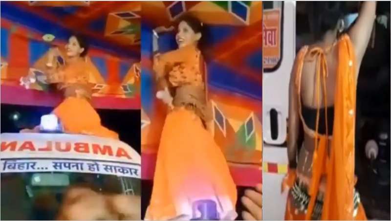 स्वास्थ्य व्यवस्था का मखौल: बिहार में एंबुलेंस पर नाचती दिखी डांसर, नीचे खड़े लोगों ने लुटाए नोट