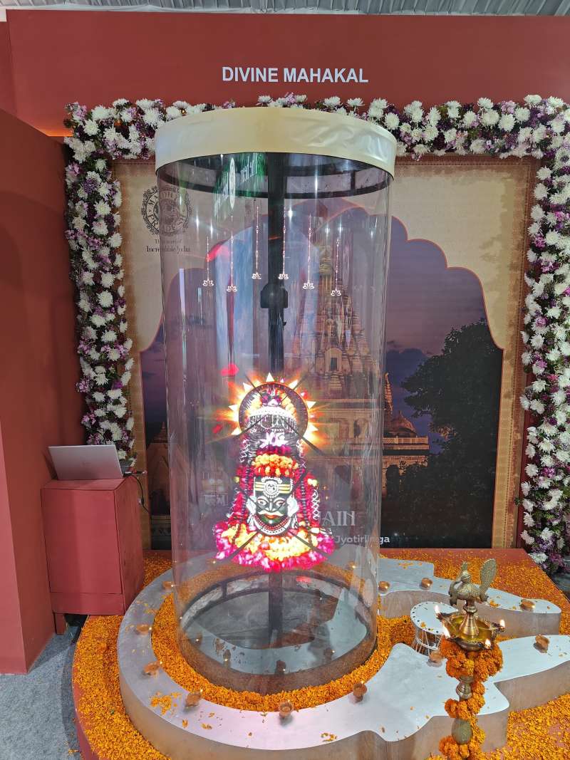 भोपाल : ग्लोबल इन्वेस्टर्स समिट में मध्यप्रदेश टूरिज्म बोर्ड का पवेलियन आकर्षण का केंद्र बना हुआ है। राज्य के प्रमुख पर्यटन स्थल, प्राचीन मंदिर, राजसी किले और लुभावने प्राकृतिक स्थलों को नवीन तकनीक और इंटरैक्टिव पैनल के माध्यम से प्रदर्शित किया जा गया है। यहां डेलिगेट्स ने होलोग्राम के जरिए महांकाल के सजीव दर्शन कराये जा रहे हैं। उन्हें उज्जैन से विशेष रूप से मंगाया गया बाबा महाकाल का प्रसाद भी दिया जा रहा है। इसके साथ ही साइक्लिंग करते हुए वर्चुअल रियलिटी के ज़रिए ओरछा, खजुराहो और सांची स्तूप के साथ वन्य जीवन का अनुभव कराया जा रहा है।