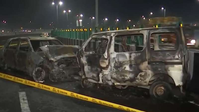 द्वारका एक्सप्रेसवे: दो कारों की टक्कर के बाद कारों में लगी आग, 1 की मौत