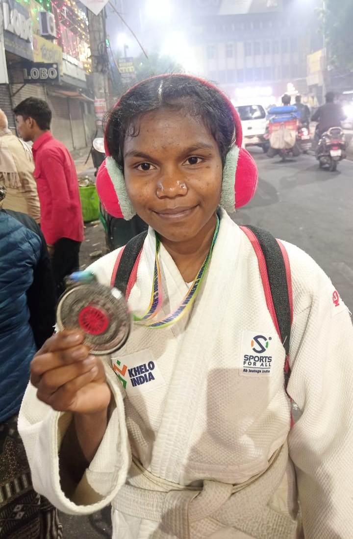 रायपुर : माता-पिता की मृत्यु के बाद पूर्णत अनाथ और बेसहारा हुई हेमबती ने अपने हौसले से उस मुकाम को हासिल किया, जिसकी सिर्फ कल्पना ही की जा सकती है। बीते पांच सालों से छत्तीसगढ़ राज्य बाल कल्याण परिषद द्वारा संचालित बालिका गृह कोण्डागांव में रह रही हेमबती नाग ने इस दौरान पूरे मनोयोग के साथ न सिर्फ जूडो खेल का प्रशिक्षण प्राप्त किया, बल्कि कई क्षेत्रीय एवं राष्ट्रीय स्पर्धाओं में पदक जीत कर अपनी प्रतिभा का लोहा मनवाया है। हेमबती नाग की इस गौरवपूर्ण उपलब्धि के लिए 26 दिसंबर 2024 को राष्ट्रपति श्रीमती द्रौपदी मुर्मु ने उन्हें प्रधानमंत्री राष्ट्रीय बाल पुरस्कार 2024 से सम्मानित किया। यह कार्यक्रम राष्ट्रपति भवन नई दिल्ली में आयोजित हुआ था।
