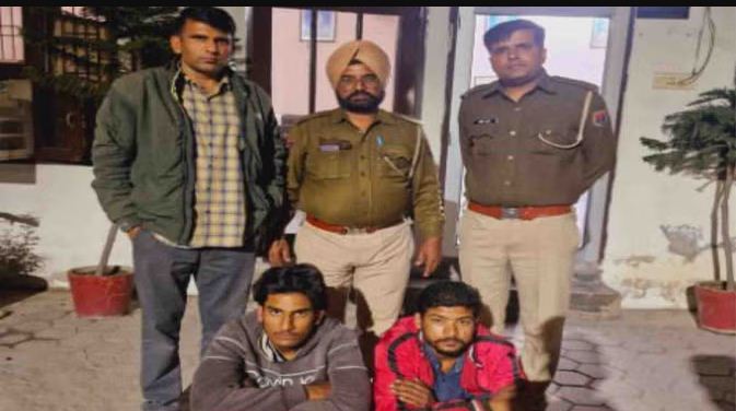 श्री गंगानगर के कोतवाली थाना क्षेत्र में आठ मिनट बाइक चोरी का मामल सामने आया है। पुलिस ने दो नाबालिगों को निरुद्ध और दो युवकों को गिरफ्तार कर वारदात का खुलासा किया है। आईपीएस गौरव यादव के मुताबिक मामले में सेतिया फार्म गली नंबर एक निवासी नीलुराम ने प्रकरण दर्ज करवाया। इसमें बताया कि परिवादी दो फरवरी सुबह करीब 11.00 बजे विनोबा बस्ती के पास काम करने गया था और बाइक बाहर खड़ी कर दी। इसके करीब ठीक आठ मिनट बाद 11:08 बजे वापस आ कर देखा तो बाइक गायब थी।आसपास के लोगों से इस संबंध में पूछताछ की, लेकिन कोई पुष्ट जानकारी नहीं मिली। पुलिस को मामले से अवगत करवाते हुए कार्रवाई करने की मांग की। पुलिस ने घटना स्थल के निकट लगे सीसीटीवी कैमरों की फुटेज खंगाली और मुखबिर से जानकारी जुटाते हुए दो संदिग्ध नाबालिगों से पूछताछ की। इस दौरान दोनों नाबालिगों द्वारा बाइक चोरी की वारदात का खुलासा हुआ। दोनों से पूछताछ करते हुए पुलिस ने चोरी शुदा बाइक तो बरामद कर ली, लेकिन बाद में पता चला कि इसके पुर्जे यानी पार्ट्स निकाल कर किसी को बेच दिए गए हैं।दोनों नाबालिगों को मंगलवार बाल संप्रेषण गृह भेज कर पार्ट्स खरीदने वालों की तलाश शुरू की गई। जांच पड़ताल करते हुए पुलिस ने पार्ट्स खरीदने वाले राजीव पुत्र सुरजाराम निवासी महावीर कॉलोनी और अमन एनक्लेव निवासी सोयम खान पुत्र खुशी मोहम्मद को बुधवार गिरफ्तार कर लिया। साथ ही आरोपितों की निशानदेही पर चोरीशुदा बाइक के पार्टस भी बरामद कर लिए। इस कार्रवाई में कोतवाली थाना पुलिस के हवलदार दर्शन सिंह, सिपाही प्रवीण कुमार, बलवंत और सुरेन्द्र सिंह शामिल थे।
