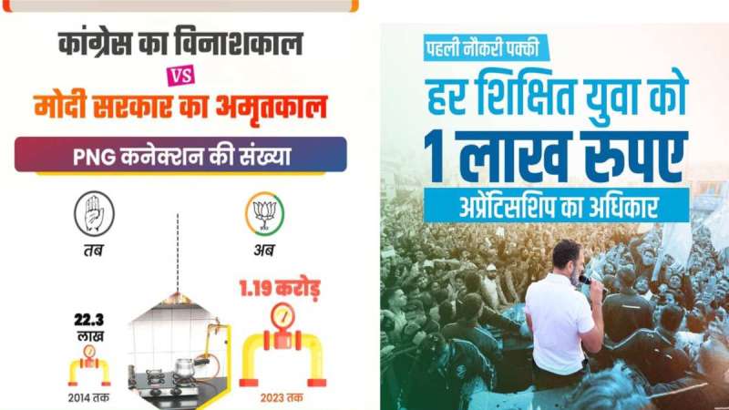 वहीं कांग्रेस ने भी अपने सोशल मीडिया हैंडल पर पोस्टर जारी किया और लिखा ‘पहली नौकरी पक्की। हर शिक्षित युवा को 1 लाख रुपए की अप्रेंटिसशिप का अधिकार।’ भाजपा अपने किए गए कामों के आधार पर जनता को लुभाने की कोशिश कर रही है। वहीं कांग्रेस बेरोजगारी, महंगाई के मुद्दे के जरिए सरकार को घेरने की कोशिश कर रही है। जनता का आशीर्वाद किसे मिलता है यह तो रिजल्ट वाला दिन ही बताएगा। फिलहाल, दोनों पार्टियों के बीच वार-पलटवार जारी है और सोशल मीडिया का बखूबी इस्तेमाल किया जा रहा है।