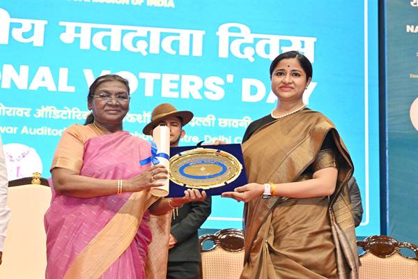 मुख्यमंत्री डॉ. यादव ने सोशल मीडिया एक्स पर लिखा है कि राष्ट्रपति मुर्मु द्वारा झाबुआ कलेक्टर सुनेहा मीना को सम्मान प्रदान करना मध्यप्रदेश के लिए अत्यंत गौरव का विषय है। मुख्यमंत्री डॉ. यादव ने कहा कि कलेक्टर सुमीना ने निर्वाचन प्रक्रिया में मतदाताओं की सहभागिता बढ़ाने के लिए अनुकरणीय नवाचार किए हैं , जो लोकतंत्र के सतत् विकास और उसकी समृद्धि के प्रयासों को एक नई दिशा प्रदान करता है।