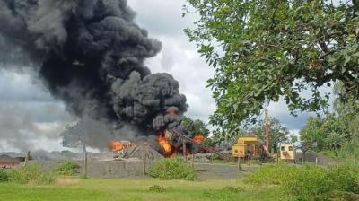 अलकतरा अनलोडिंग के दौरान अचानक भड़की लपटें , स्थानीय लोगों ने दी अग्निशमन विभाग को सूचना
