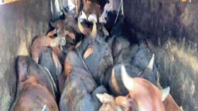 राजस्थान के भीलवाड़ा में गोवंश तस्करी का आरोप, ट्रक में लगाई आग