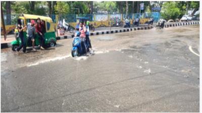 भोपाल में लोक भवन के सामने फिर लापरवाही उजागर, पाइपलाइन फटने से धंसी सड़क