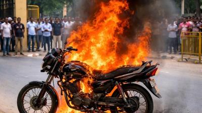 चलती बाइक में अचानक भड़की आग, जिला न्यायालय क्षेत्र में अफरा-तफरी