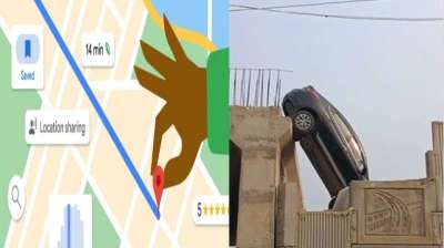 जान जोखिम में: गूगल मैप के भरोसे चले और अधूरे पुल पर लटक गई कार