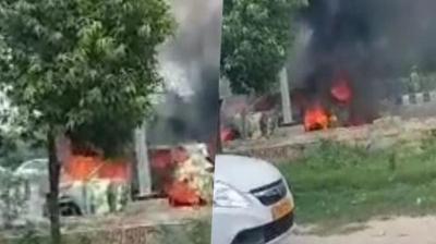 ग्राउंड फ्लोर पर खड़ी कार से भड़की आग, फैलते ही खौफ का माहौल :नोएडा सेक्टर-63