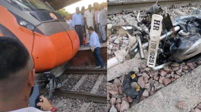 सोनीपत : दिल्ली-पानीपत रेलवे लाइन पर अगवानपुर फाटक के पास बड़ा हादसा होते-होते टल गया। बन्द फाटक पार करते समय एक बाइक वंदे भारत ट्रेन की चपेट में आ गई...