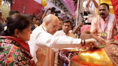 राजनीतिक व्यस्तताओं के बीच अमित शाह का पारिवारिक अंदाज़, पोते-पत्नी संग लालबागचा राजा के दरबार में पहुंचे