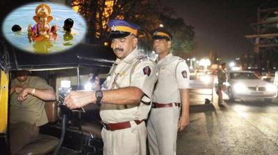 गणपति विसर्जन के लिए जुटने वाली भारी भीड़ को देखते हुए सुरक्षा के कड़े इंतज़ाम, तैनात किए गए हज़ारों पुलिसकर्मी
