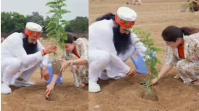 हरियाली के लिए एक साथ कदम: बाबा और हनीप्रीत ने मिलकर लगाई पौधा"