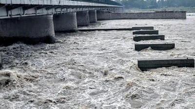 यमुना का बढ़ता जलस्तर, पुराने रेलवे पुल पर चेतावनी निशान पार
