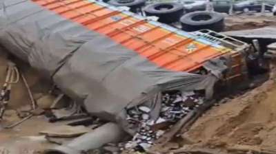 गुरुग्राम में 133 मिमी बारिश, पेरीफेरल पर धंसी सड़क, ट्रक पलटा