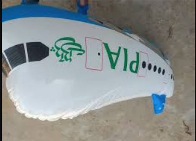विमान के आकार का गुब्बारा और पाकिस्तानी चिह्न